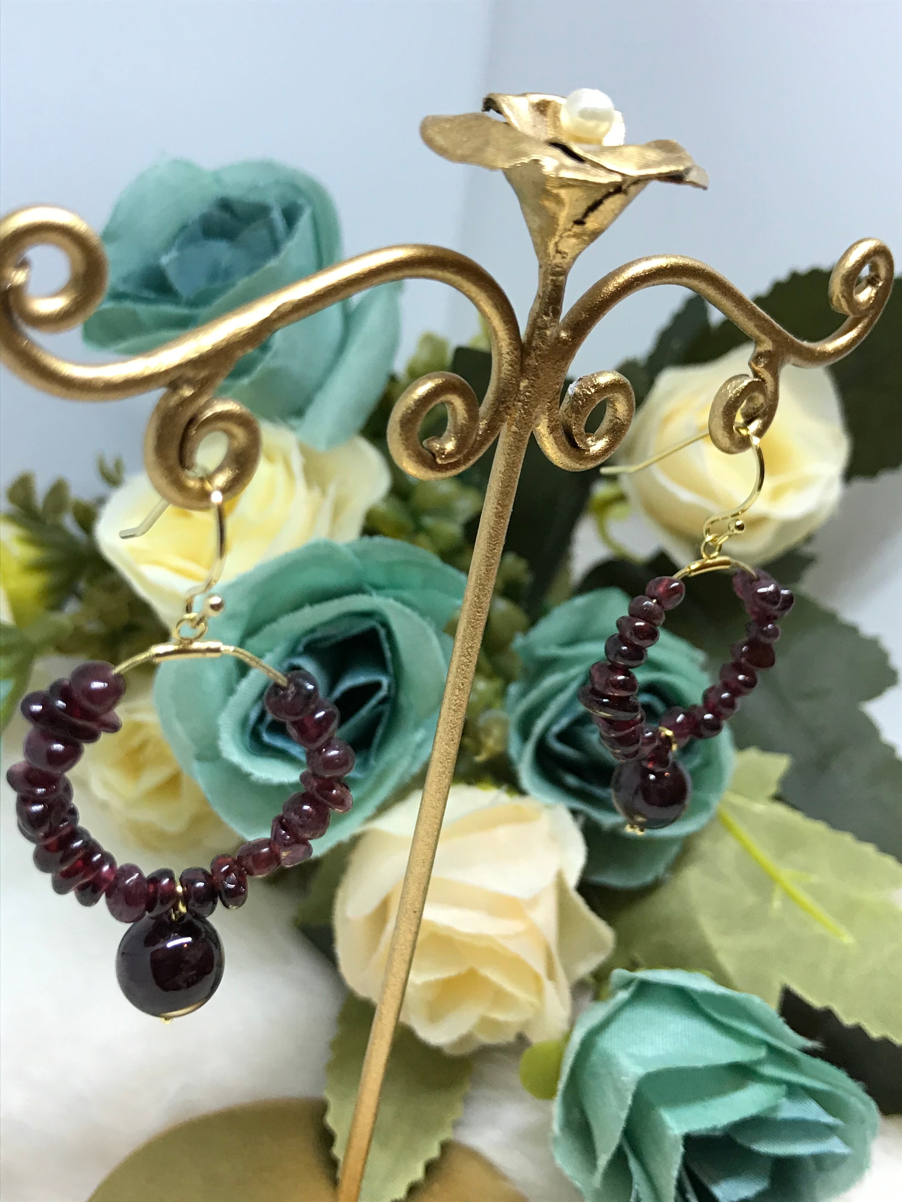 ガーネットのフープピアス&クロス
